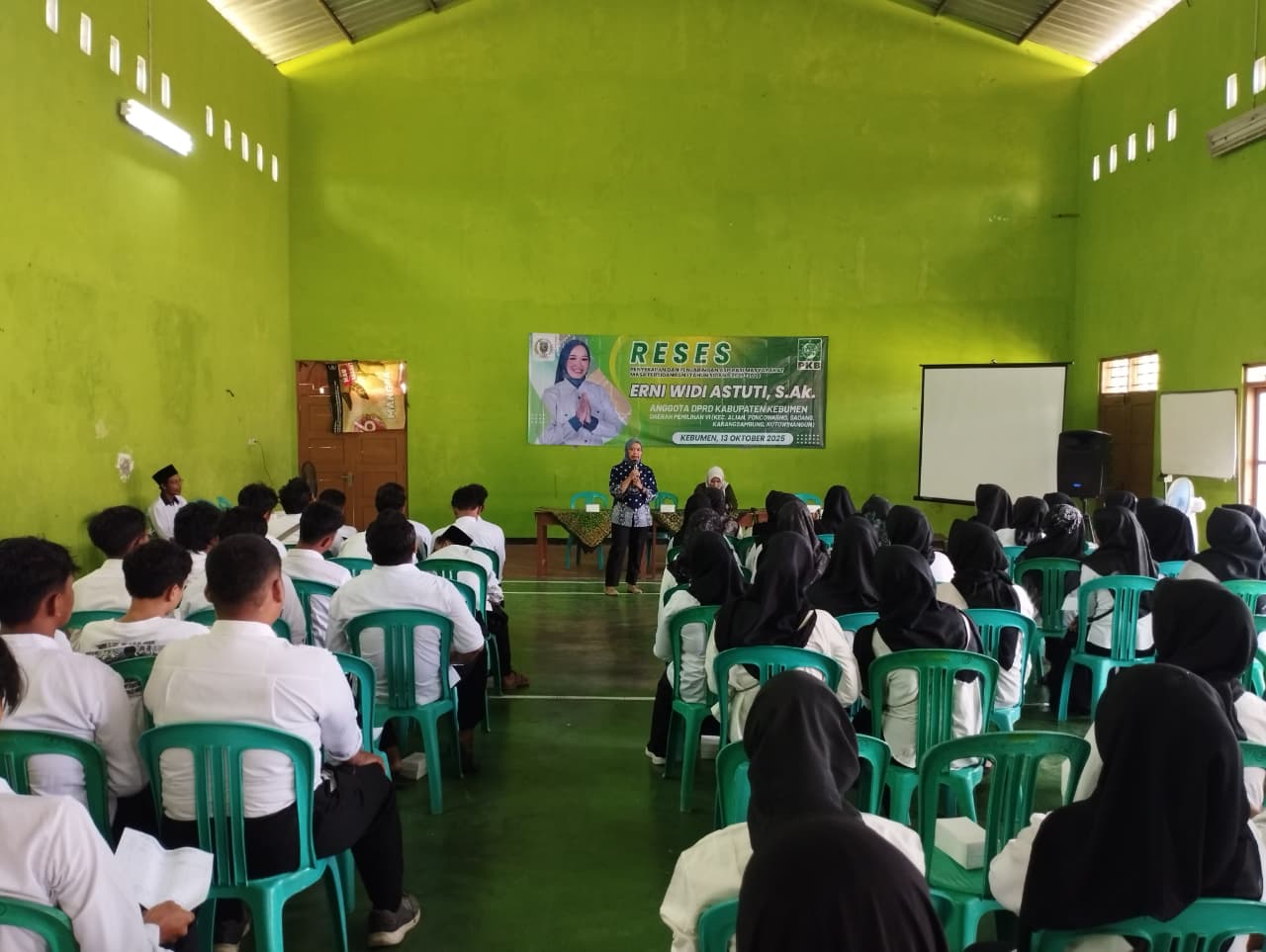 KEBUMEN – Anggota DPRD Kabupaten Kebumen dari Fraksi PKB, Erni Widi Astuti melaksanakan kegiatan reses di GOR Desa Karangtanjung, Senin (13/10/2025). Kegiatan ini digelar sebagai bagian dari agenda rutin DPRD untuk menjaring masukan atau aspirasi dari masyarakat terkait pembangunan dan pelayanan publik.